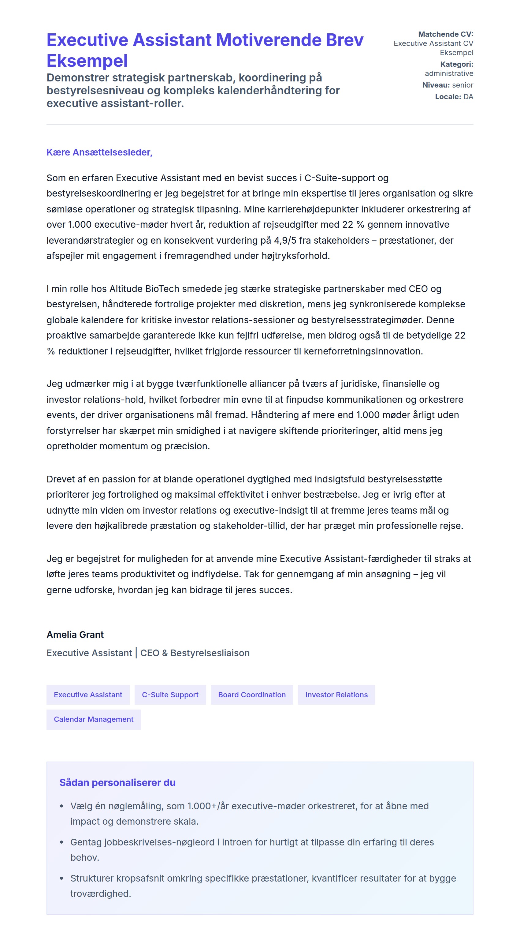 Executive Assistant Motiverende Brev Eksempel