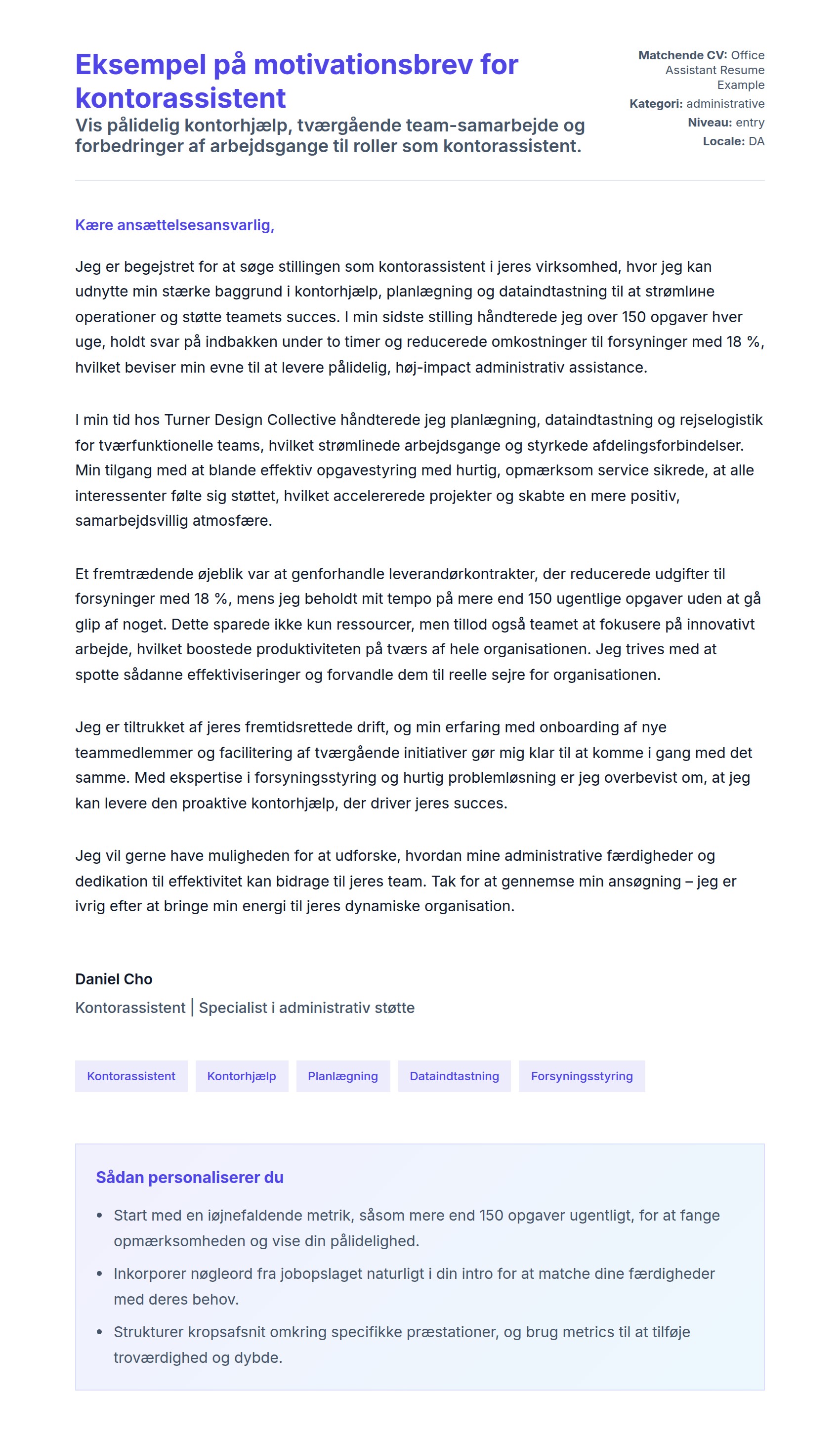 Vis pålidelig kontorhjælp, tværgående team-samarbejde og forbedringer af arbejdsgange til roller som kontorassistent.