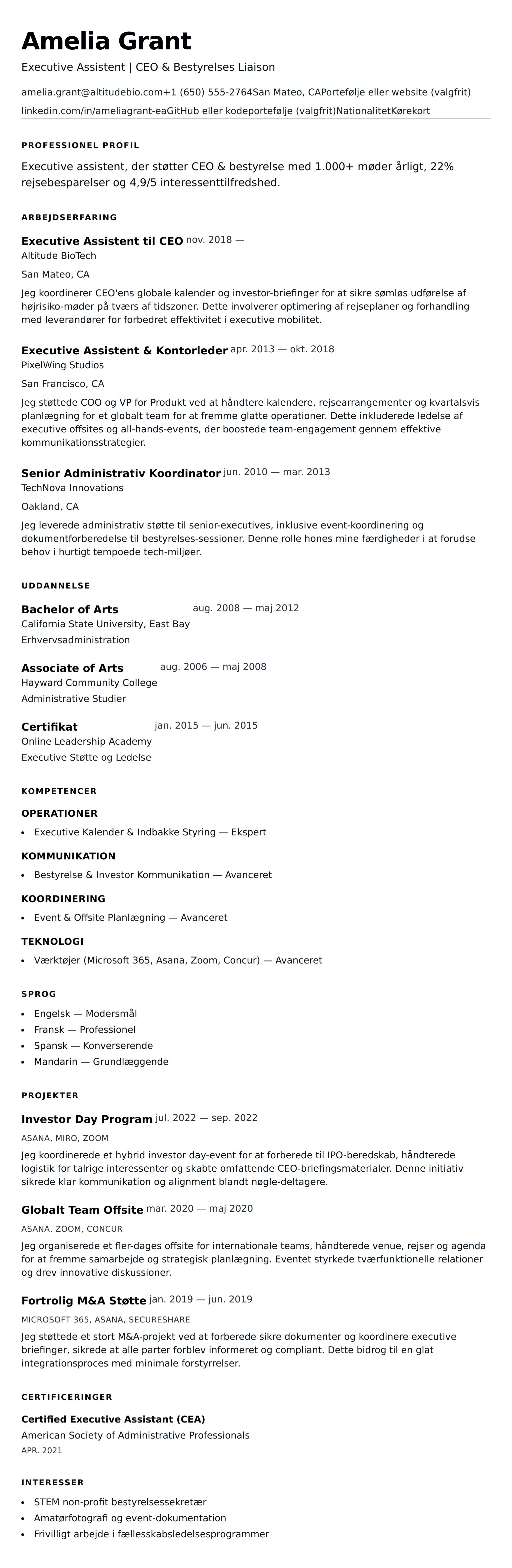 Executive Assistent CV Eksempel