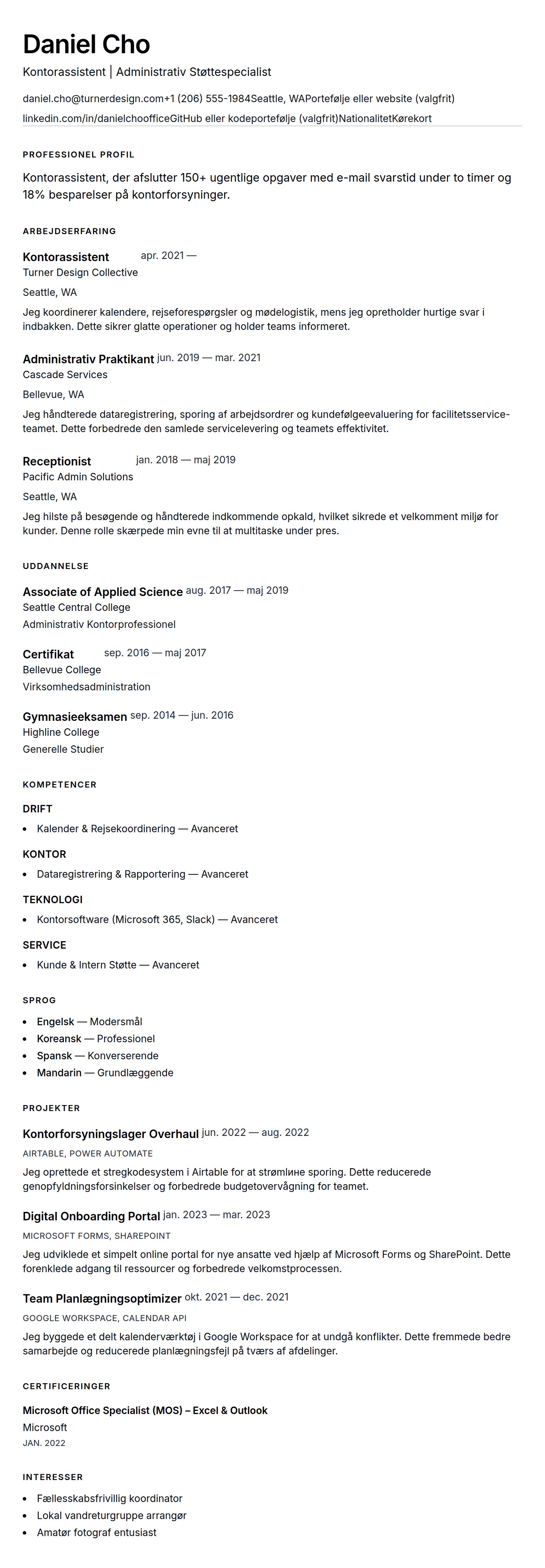 Demonstrer pålidelig kontorhjælp, tværgående teamsamarbejde og workflow-forbedringer for kontorassistentroller.