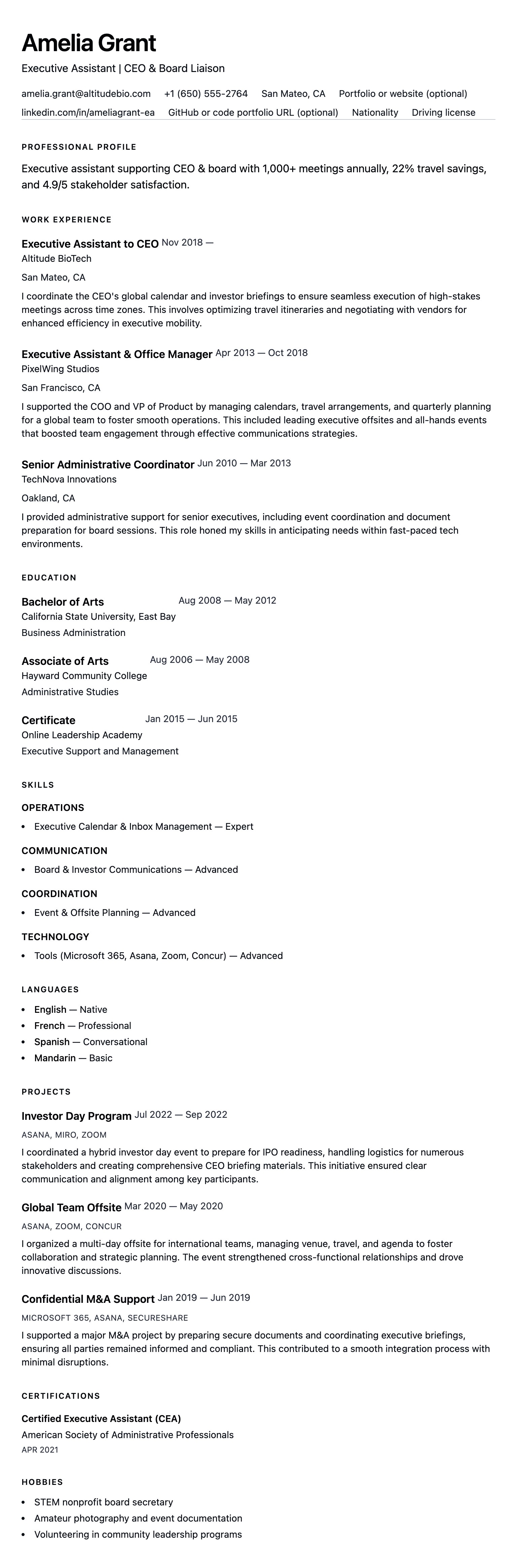Demonstrate strategic partnership, board-level coordination, and complex calendaring for executive assistant roles.