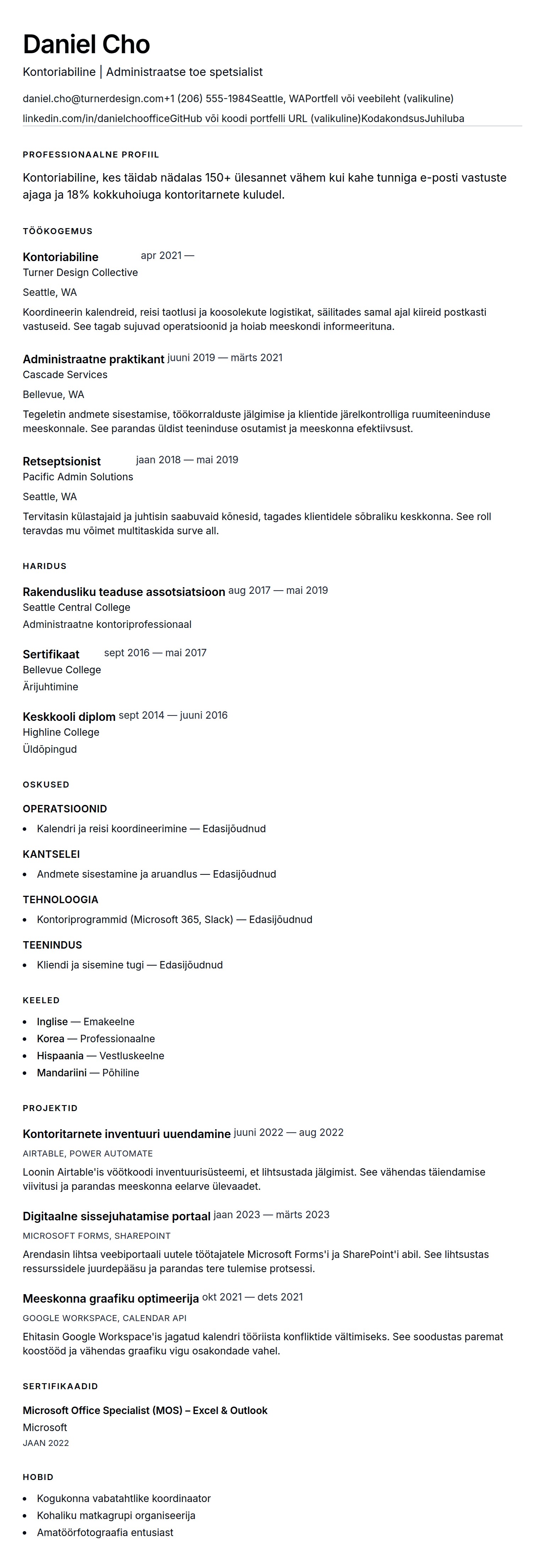 Demonstreerige usaldusväärset kantselei tuge, ületavat meeskonnatööd ja tööprotsesside parandusi kontoriabilise rollides.