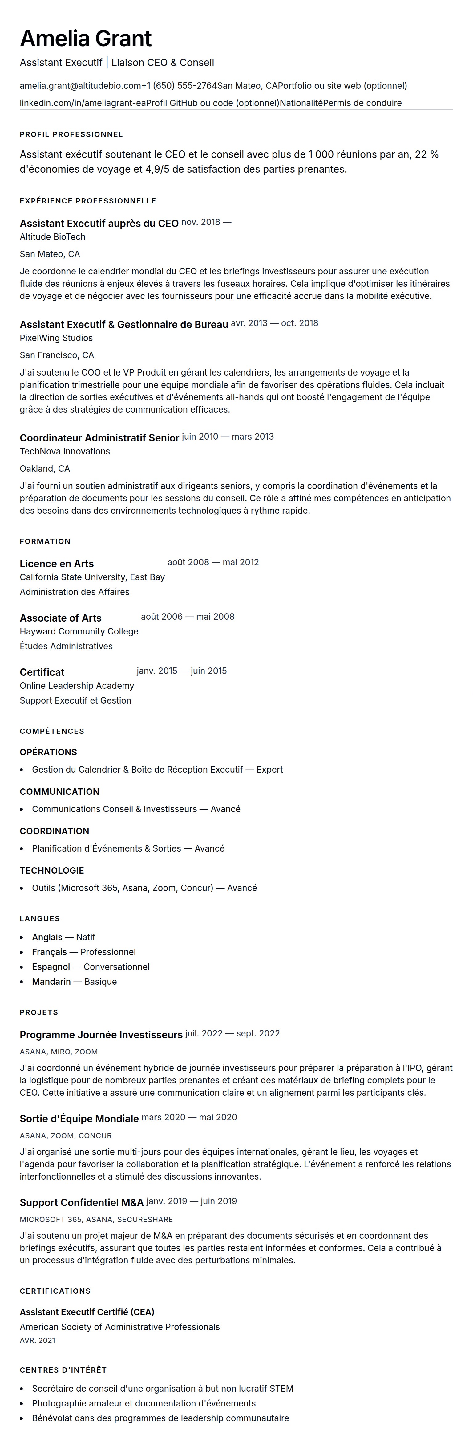 Démontrer un partenariat stratégique, une coordination au niveau du conseil d'administration et une gestion complexe des calendriers pour les rôles d'assistant exécutif.