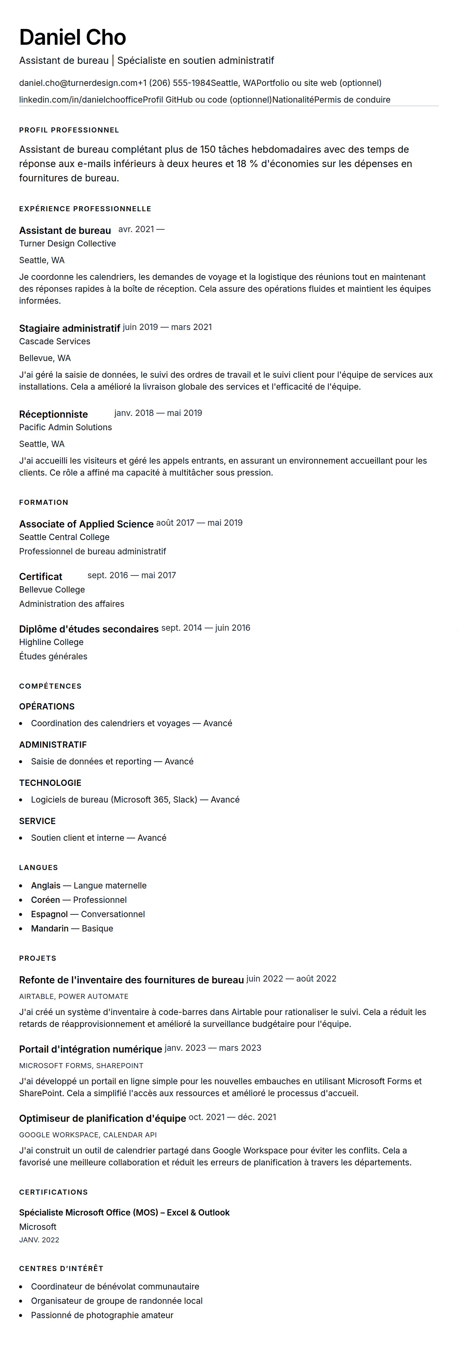 Démontrez un soutien administratif fiable, une collaboration inter-équipes et des améliorations de flux de travail pour les rôles d'assistant de bureau.