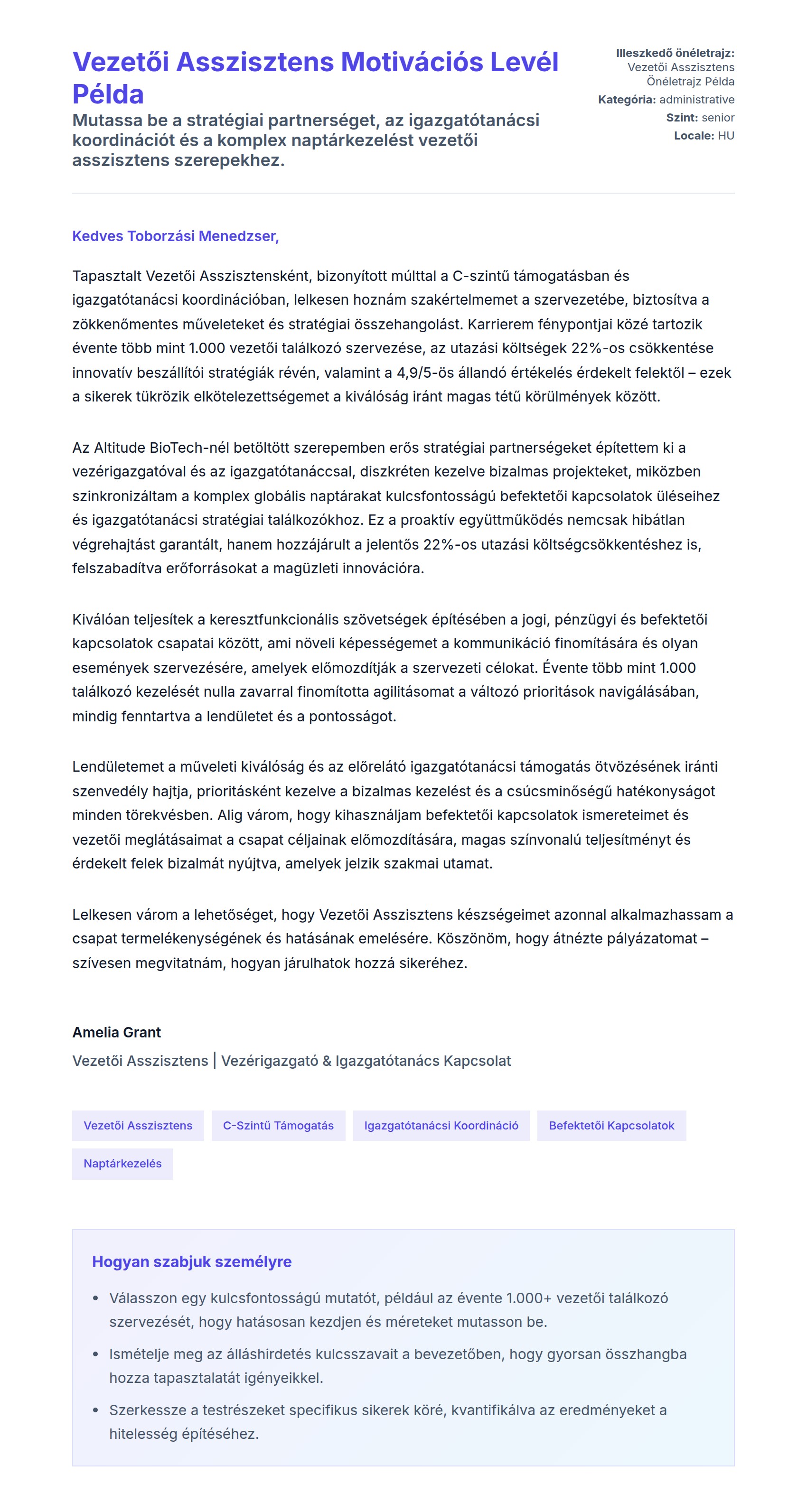 Mutassa be a stratégiai partnerséget, az igazgatótanácsi koordinációt és a komplex naptárkezelést vezetői asszisztens szerepekhez.