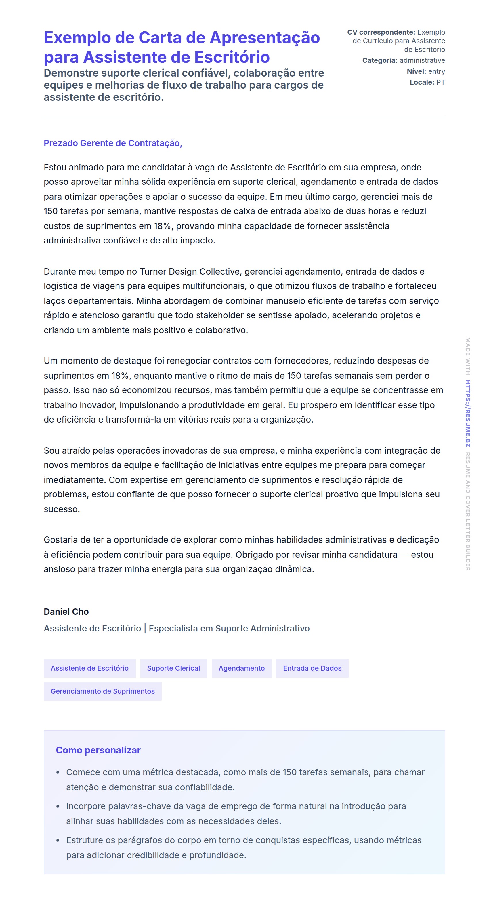 Demonstre suporte clerical confiável, colaboração entre equipes e melhorias de fluxo de trabalho para cargos de assistente de escritório.