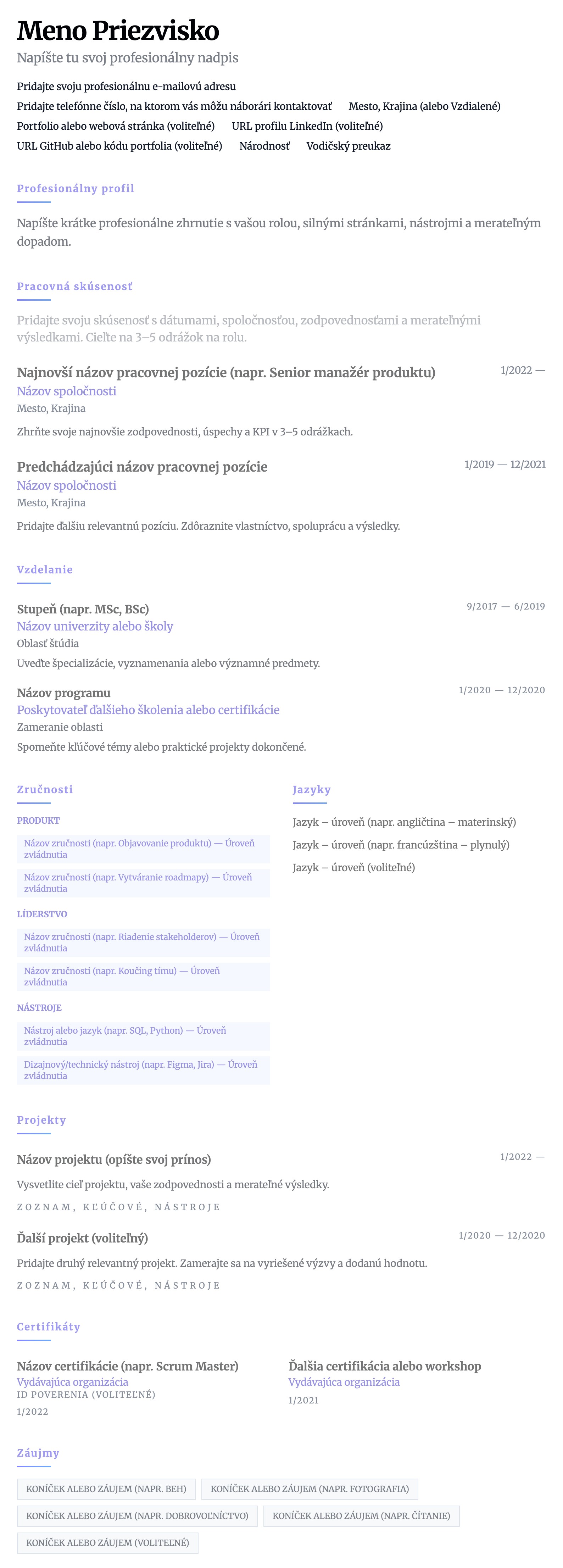 Clean and minimalist template for a professional style