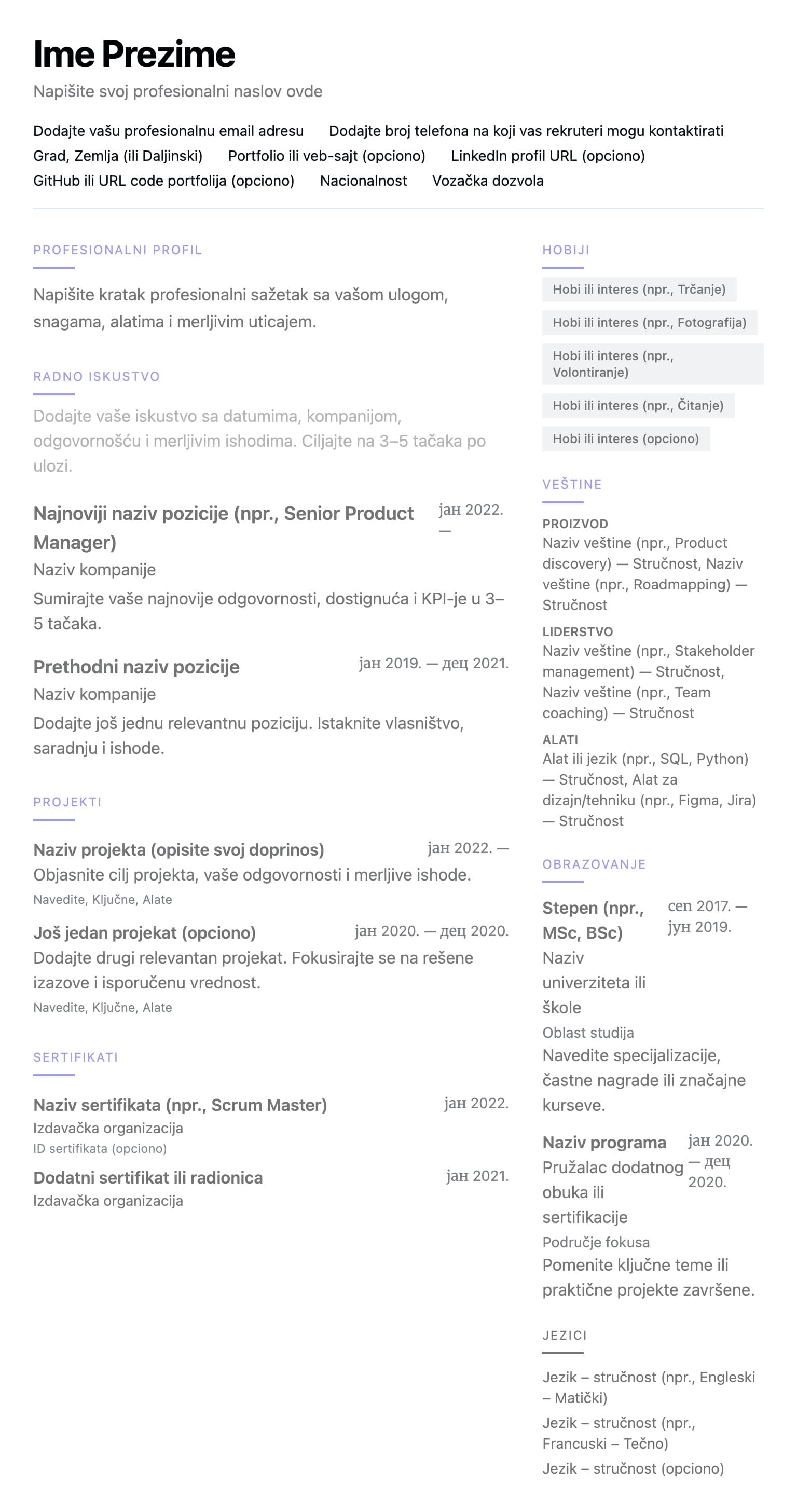 Svaki šablon je dizajniran od strane stručnjaka da maksimizira vaše šanse za dobijanje intervjua