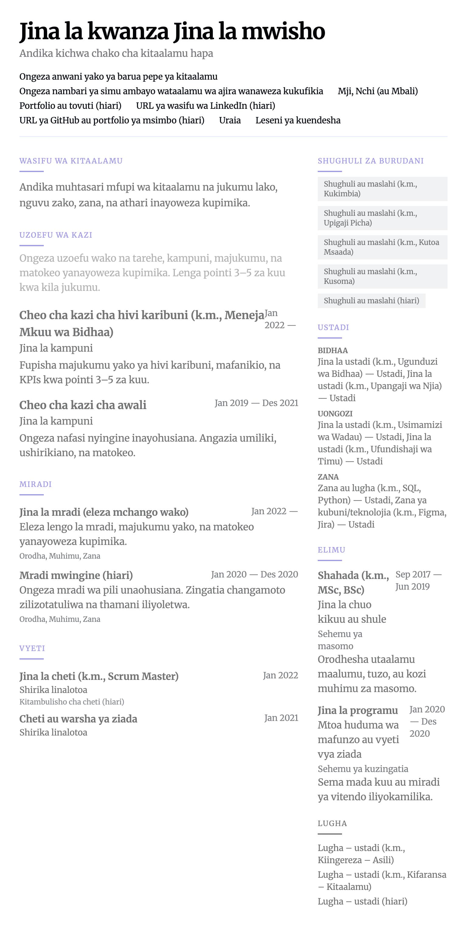 Chagua kutoka kwa vifaa vyetu vya kisasa na uanze kuunda CV yakobila malipo