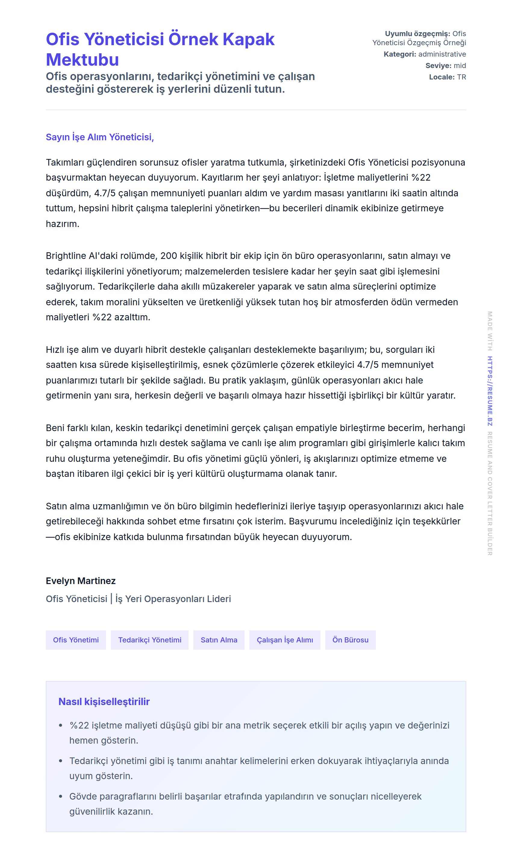 Ofis yöneticisi pozisyonları için insan operasyonları, bütçe kontrolü ve işyeri deneyiminizdeki ustalığınızı gösterin.